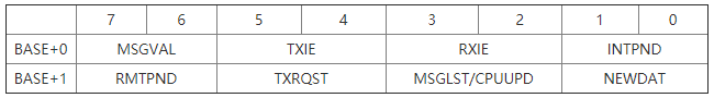 MSGLST——报文丢失标志位,只用于接收报文寄存器。10表示未读报文被新报文覆盖,01表示未覆盖。