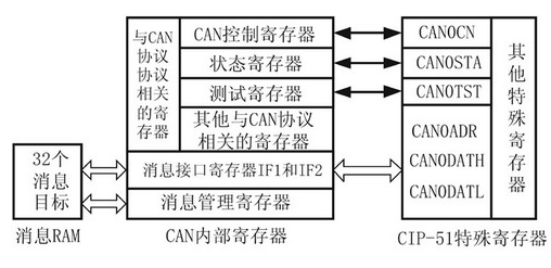 图2 CIP-51访问CAN中控制寄存器和每个消息的路径图