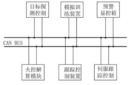 “X型火控系统”根据实际需要采用了CAN总线方式来实现其内部单体间的通信。CAN总线是一种用于各种设备检测及控制的现场总线,它是一种多主总线,在高速网络和低成本的节点系统中应用都很广泛。CAN总线与一般的通信总线相比,它的数据通信具有突出的可靠性、实时性和灵活性。其特点如下: