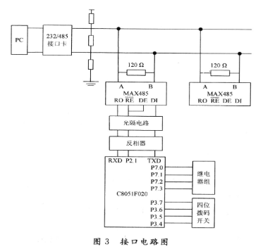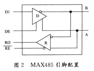 MAX485接口芯片是MAXIM公司的一种RS 485芯片,采用单一电源+5 V工作,额定电流为300μA,采用半双工通讯方式,它完成将TTL电平与:RS 485电平之间转换的功能。