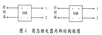 固态继电器就相当于一个无触点的开关,如图4所示,通过对输入控制端信号的给定,对交流或直流电源的通断进行控制。