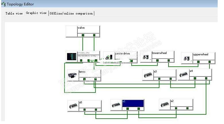 TIA:同理,连接好CPU与PC后,将配置好的离线项目直接下载到CPU后检查拓扑网络,如果都变成绿色则表明自动分配完成。