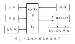以单片计算机89C52为核心,并配置由10位A/D转换器MC14433、功能按键、MAX487组成的RS-485接口等,实现对测试系统状态的设定,对压力、水量、时间的测定和与上位机进行数据通讯。按键用来进行系统状态设定以及启、停等功能控制,压力传感器用来检测压力,电动调压阀用来控制加压装置以使压力保持恒定,位移传感器用来检测渗水量。其中,电动调压阀的控制采用光电耦合器,以提高系统的抗干扰性能。