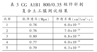 利用该仪器对某厂生产的短纤针刺土工膜CGA1B1 800/0.35进行测试,结果如表3所示。