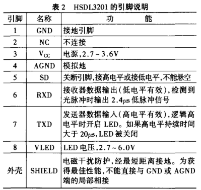 HSDL-3201是一种廉价的红外收发器模块,工作电压为2.7~3.6V。由于发光二极管的驱动电流是内部供给的恒流32mA,因此确保了连接距离符合IrDA1.2(低功耗)物理层规范。[page]