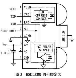 现以Agilent公司的HSDL7001和HSDL3201芯片为例,详细说明红外通讯接口电路的实现方法。