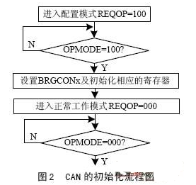 在使用CAN 之前, 必须对它的一些内部寄存器进行设置, 如CAN 控制寄存器CANCON 、波特率寄存器BRGCONx 的设置以及对邮箱进行初始化。