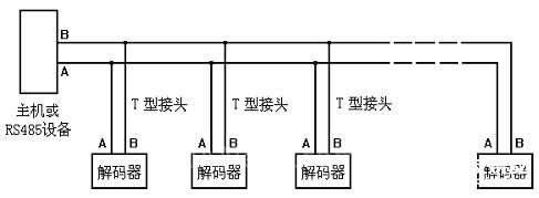 标准的RS485总线须采用T型连接,因而标准的解码器布线方法如图3所示。