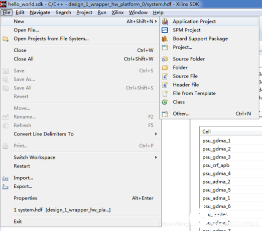 点击File--》Application Project。填写工程名 hello_world, 点击Next