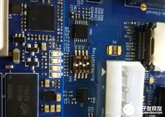 MPSOC开发板模式设置,这里我们设置为SD卡启动模式