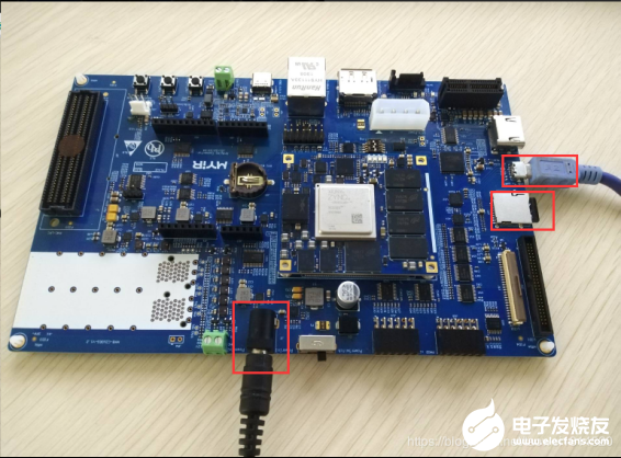 MPSOC开发板连接12V电源、连接uart串口、插入SD卡
