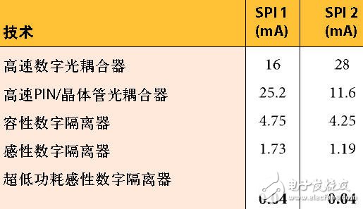 表2.一个100kbps隔离式SPI接口的每一端的总功耗