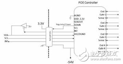 图4.搭载隔离式I2C和中断的POE、4端口控制器