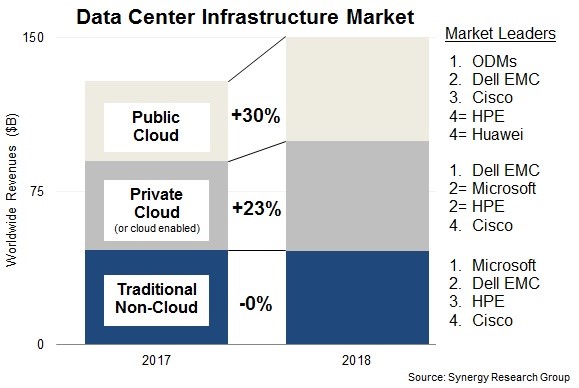 Synergy Research的新数据显示,2018年全球在数据中心硬件和软件方面的支出增长17%。推动增长的原因是对公共云服务的需求不断增长,以及对越来越丰富的服务器配置需求,这推高了企业服务器的平均销售价格。