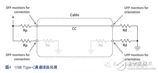 决定插头方向以及初始功率之后,装置会使用CC线路彼此通讯(图4)。透过这种方式,装置可以在不同的电源功率上达成一致,并且指定消耗装置或电源,以即时调节电力传输。CC线路通讯也可以用于通知将使用的通讯类型。如先前所述,USB Type-C可于高速线路、USB 2.0等进行通讯。装置会通知这些线路中可以透过CC线路使用的线路。但是并非所有装置都支援所有通讯协定。