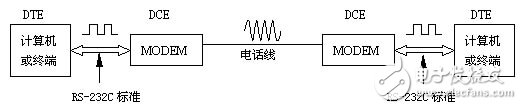 微型计算机之间的串行通信就是按照RS-232C标准设计的接口电路实现的。如果使用一根电话线进行通信,那幺计算机和MODEM之间的联机就是根据RS-232C标准连接的。其连接及通信原理如图5-6所示