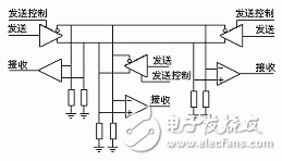 RS-485适用于收发双方共享一对线进行通信,也适用于多个点之间共享一对线路进行总线方式联网,但通信只能是半双工的,线路如图5-10所示。