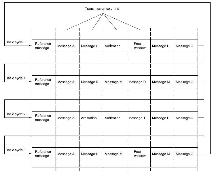 专用时间窗(Exclusive Windows):用来传输特殊的周期信息,这些消息不会参与总线竞争,是置身事外的一个记录员角色。