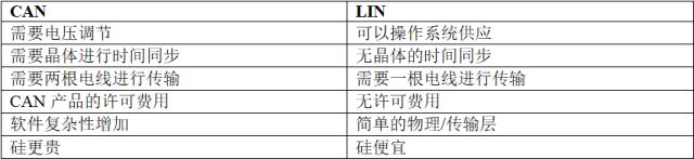 表1:CAN和LIN之间的实现差异