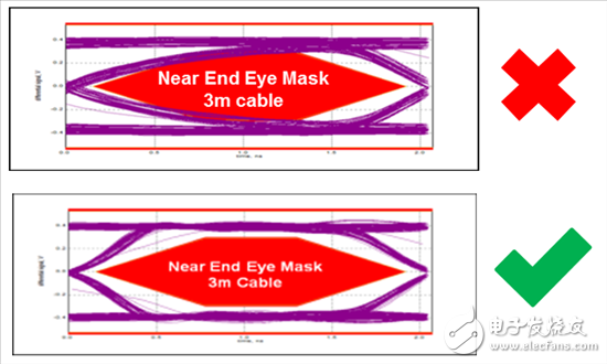 图1:TUSB211-Q1用3m电缆改进了近端眼图中的上升边缘