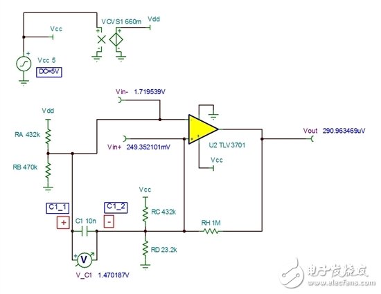 图1.将OPA316配置为确定静态功率耗散