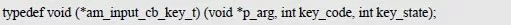 am_input_cb_key_t 是按键处理函数的指针类型,它是在am_input.h 文件中使用typedef自定义的一个类型。即: