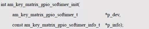 其中的p_dev 为指向am_key_matrix_gpio_softimer_t 类型实例的指针,p_info 为指向am_key_matrix_gpio_softimer_info_t 类型实例信息的指针。