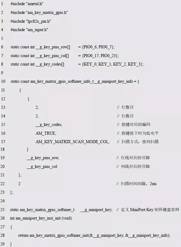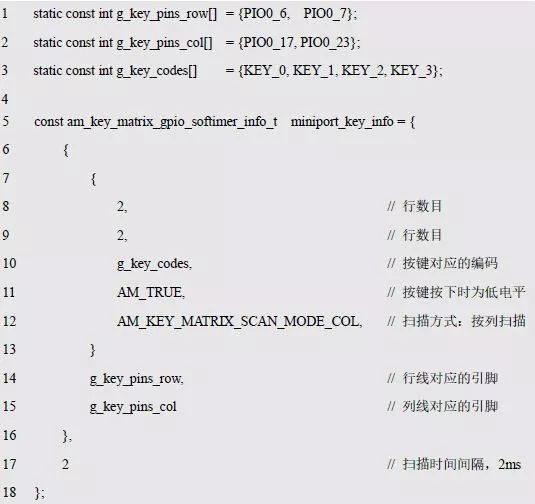 程序清单7.35 矩阵键盘实例初始化函数实现(am_hwconf_miniport _key.c)