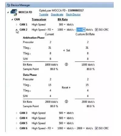 图5 OptoLyzer® Studio中的CAN和CAN FD设置