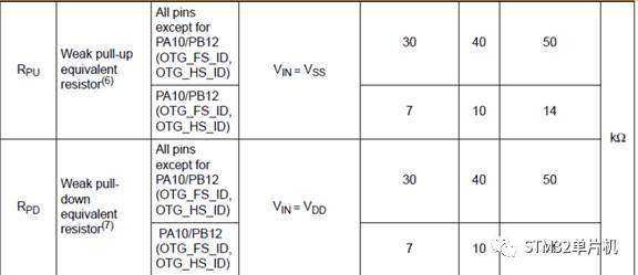 需要注意, I2C的SDA、SCL引脚内部上拉电阻,为弱上拉。使用者可以通过对应型号STM32的数据手册,查看对应引脚的上拉电阻,以便判断是否能够满足应用需要。如下为STM32F469上拉电阻信息截图。