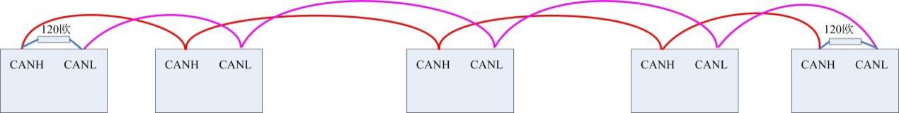 线性拓扑结构是CAN总线布线规范中最为常见的,线性拓扑结构中,最常用的就是“手拉手”式的连接,如图3所示。