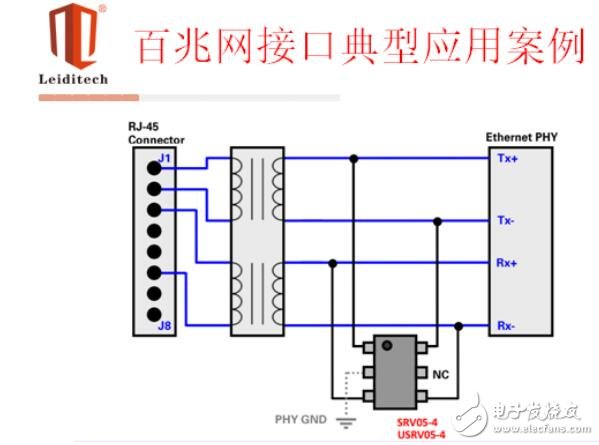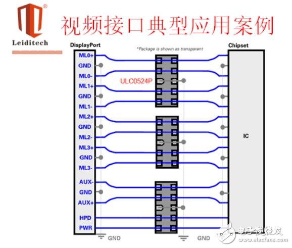 目前视频常见的输出端口设计有D-SUB、DVI(28线)、SCART(19线)和D-TERMINAL(主要日系产品在用)。视频数据线具有高数据传输率,数据传输率高达480Mbps,有的视频数据传输率达到1G以上,因而要选择低电容TVS,它通常是将一个低电容二极管与TVS二极管串联,以降低整个线路的电容(可低于3pF),达到高速率回路的要求。上海雷卯电子公司的ULC0524P具有良好的低电容特性,能够提供4路ESD保护,而它的后继产品SRDA05-6能够提供多达6路ESD保护。SRDA05-X系列产品适用于所有高速通讯线路的保护。