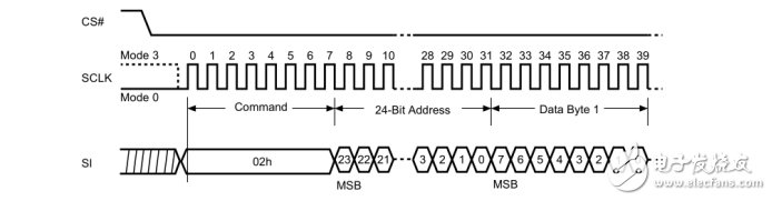 其实,无论是对芯片的擦除,编程还是读取操作,我们大致可以按照以下的套路来:写命令---写地址---写(读)数据。正如以下的时序图一样清晰明了,我们先把片选信号拉低,再发个0x02页编程命令,再发个地址,就可以轻松写数据了。