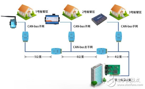 2)使用CAN转光纤设备(CANHub-AF2S2),光纤抗干扰能力强,传输距离一般是CAN传输距离的2倍;