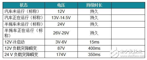 汽车系统将对输入使用保护和/或调节,以限制负载的电压。该电压通常限于高出卡车电压或为电池电压的两倍,但低于40V。输入保护功能可使输入电压介于3-40V之间。