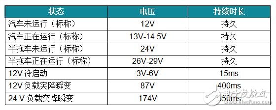 汽车系统有一套独特的要求和设计障碍,超出了USB供电的要求。表1所示为汽车系统中的典型电压。