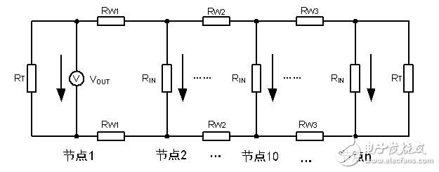 图 3为CTM1051M推荐的组网拓扑,我们要考虑总线电阻,终端电阻,发送点,接收点电压参数。画出其等效电路如图 4所示。