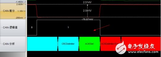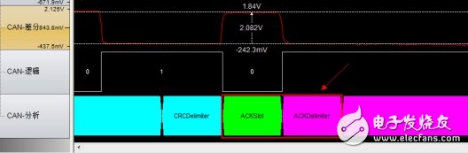 应答界定符:ACK界定符是ACK场的第二个位,并且是一个必须为隐性的位。因此,应答间隙(ACK Slot)被两个隐性的位所包围,也就是CRC界定符(CRC Delimter)和ACK界定符(ACK Delimter)。