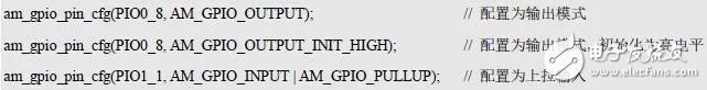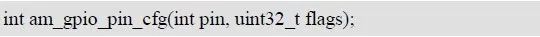 配置引脚功能和模式:int am_gpio_pin_cfg(int pin, uint32_t flags)