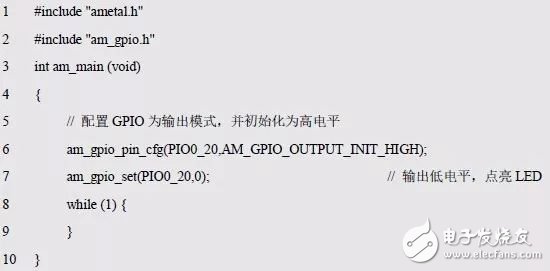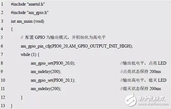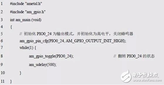 程序清单5.6 am_gpio_toggle()范例程序