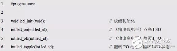 程序清单5.14 在led.h 中添加函数声明