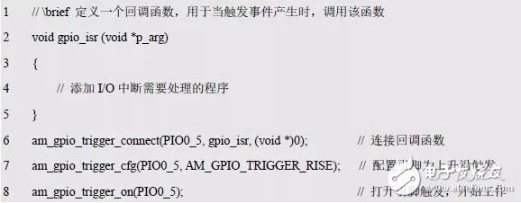 程序清单5.20 am_gpio_trigger_on ()范例程序