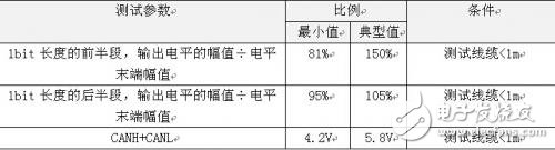 CAN总线设计规范对于CAN节点的差分电平位信号特征着严格的规定,如果节点的差分电平位信号特征不符合规范,则在现场组网后容易出现不正常的工作状态,各节点间出现通信故障。具体要求如表1所示,为测试标准“GMW3122信号特征标准”。
