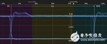 在以往的测试中,我们只能通过示波器测量1bit的差分电平显性位的末端幅值,然后在测量前半段(50%)差分电平最大值,两者相除,如果在81%~150%则通过;
