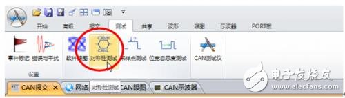 5. 为了精准测试CANH+CANL的电压值,需要使用对称性测试功能,如图6所示,在“测试”中点击启动“对称性测试”。