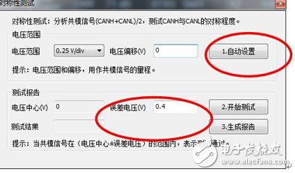 注意:由于GMW3122规定CANH+CANL的电压要在4.2V~5.8V,而正常为5V。所以在采用对称性测试时,其中使用的是(CANH+CANL)/2进行判别。 所以标准范围为2.1V~2.9V,正常为2.5V。因此图7中误差电压需要填入0.4。