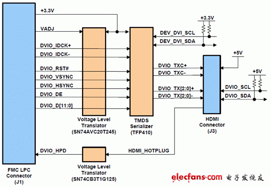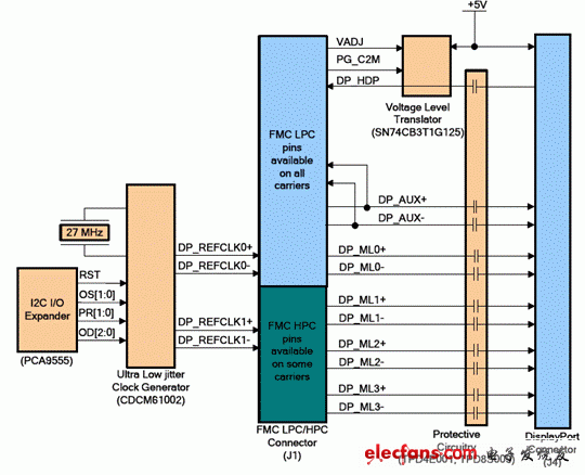 图5.DVI I/O FMC模块DisplayPort输出框图