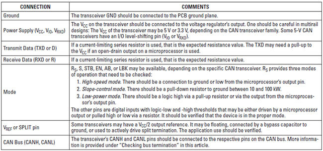 表1列举了需要检查的PCB和网络连接。收发器引脚和PCB上其他相关连接之间的电阻应为0Ω,除非设计使用表注里介绍的一些选项。例如,限流串联电阻器、总线端接电阻器或者数字I/O的上拉或下拉电阻器。