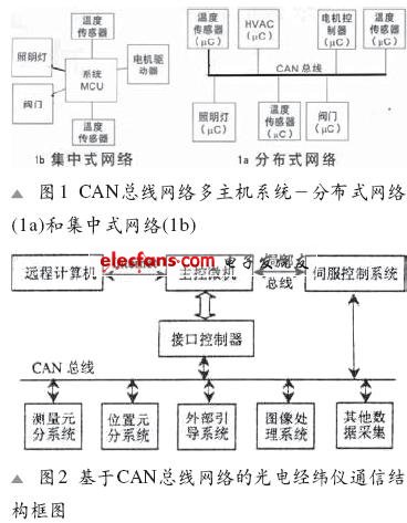 其图1进一步显示了,在多任务网络中,集中式网络通常用于以太网系统,如果在系统中增加节点,则要求对系统MCU(多芯片单元)作很大的变动;而CAN网络可实现分布式网络,从系统中增加或删除节点只需改变少量的固件。