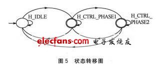 H_CTRL_PHASE1用于存储第1级流水指令,H_CTRL_PHASE2用于存储第2级流水指令,其状态转移图如图5所示。当AMBA总线上发出第1个读写指令,状态机进入H_CTRL_PHASE1状态,并将第1个读写指令转换成OCP命令。因为AMBA总线是基于流水的操作,所以第2条指令的发出不需要等第1条指令执行结束。这时候,状态机进入H_CTRL_PHASE2状态,并将此指令存储起来,等OCP命令执行结束立即将此存储的指令转换成OCP命令。这时如果AMBA总线上再次发出第3条指令,则状态机进入H_CTRL_PHASE1状态,并存储此指令。